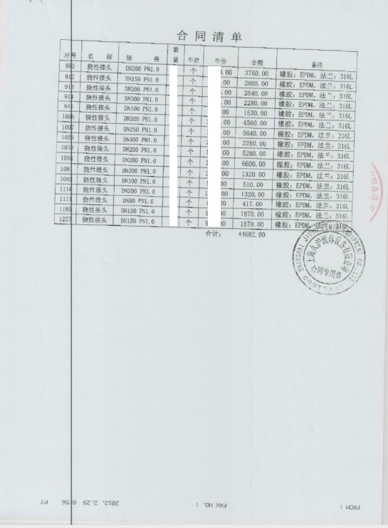【長春移動生產中心項目】單球橡膠接頭合同
